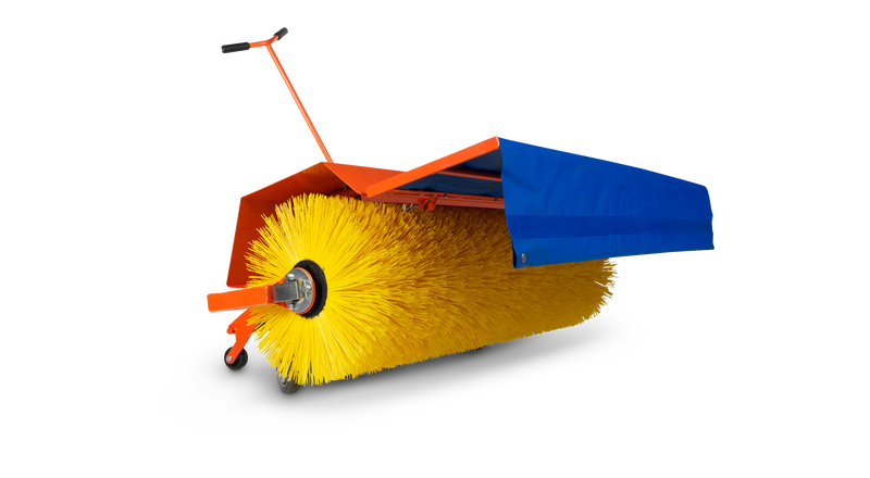 En roterande borste för att borsta bort löv, grus, snö osv. Axeldriven med vinkelväxel och kedjedrift. Två bakre fasta stödhjul som följer marken.
