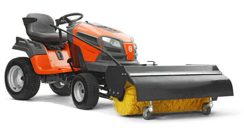 Borstaggregat för att sopa löv, snö etc. Ställbara stödhjul (pivot). Kan vinklas 20° åt vardera sidan. Passar Passar LT/YT/GT modeller från 2007 och uppsamlartraktorer med nya chassin (passar inte 126-serien.)