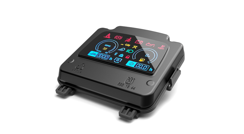 HMI färgdisplay med hög kontrast för tydlig kommunikation mellan maskin och förare vilket är ett lagkrav vid framförandet av maskinen i trafik.