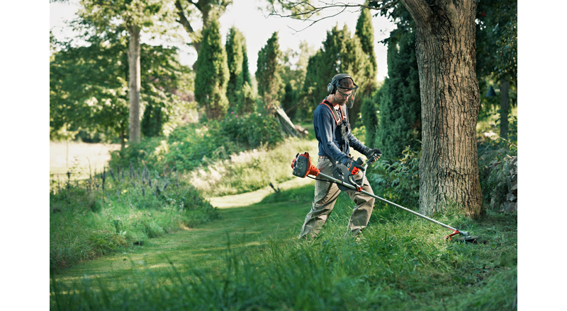 Husqvarna 122R är designad för att underlätta grästrimning i stora trädgårdar och erbjuder bekväm användning med dess låga vikt och 20cc motor med låg ljudnivå. Röjsågen är utrustad med Smart Start®, vilket ger en smidig och snabb start med minimal ansträngning. Användarupplevelsen är också förbättrad genom intuitiva reglage och en stoppkontakt som återställs automatiskt efter användning. 122R har en dubbelsele, som ger en bekväm arbetsposition, och ett rakt skaft för bättre räckvidd, t.ex. under buskar.