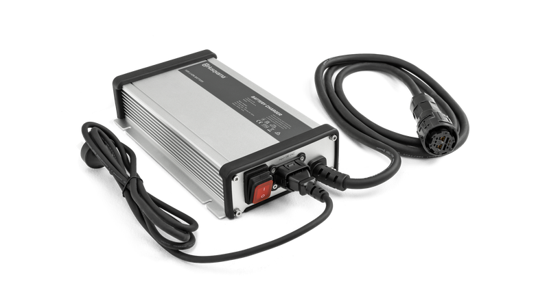 PS 900C är en 900W batteriladdare för laddning av 48V Li-ion-batterier för Husqvarna åkgräsklippare. Den ansluts till produkten med ett klickfäste eller gängfäste, beroende på modell. Kan väggmonteras för smidig åtkomst. Vid laddning av ett 2kWh batteri är laddningstiden 1 timme och 25 minuter (från 10 till 80 %) eller 2 timmar (från 0 till 100 %).