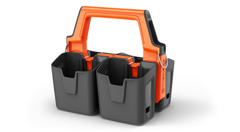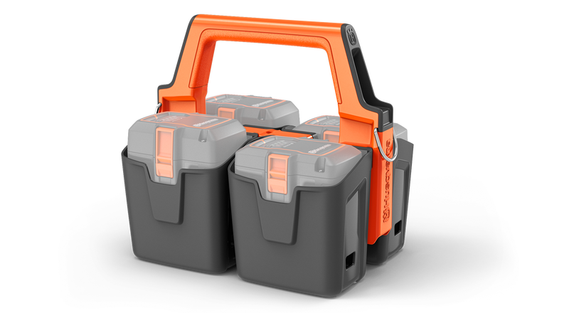 Husqvarnas batteriväska är lätt att bära med sig och gör att du kan hålla ordning på arbetsplatsen med säker förvaring av och smidig åtkomst till upp till fyra Husqvarna BLi-X 36 V-batterier. Batteriväskan gör det enkelt att transportera din utrustning och skyddar mot skador tack vare sin robusta utformning. En spårningssändare kan placeras i ett dolt fack. Batterier medföljer ej.