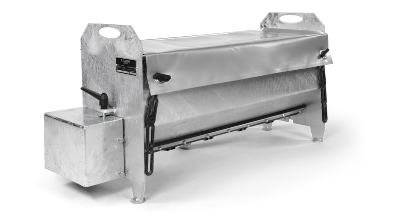 En robust, bakmonterad fallspridare för spridning av sand och vägsalt. Den elektriskt manövrerade spridningsvalsen säkerställer en jämn och tillförlitlig spridning. Elektrisk drift kräver att maskinen utrustats med kablagesats för elektriska tillbehör.Fäste måste läggas till för montering på frontklipparen.