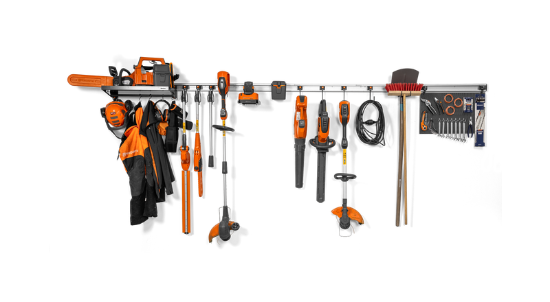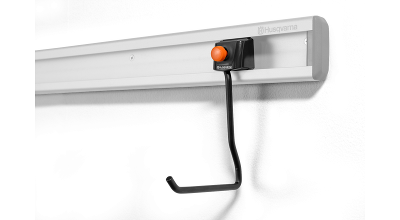 Husqvarnas förvaringskrok förenklar förvaringen av olika typer av trädgårds- och skogsredskap, som motorsågar eller häcksaxar. Den är idealisk för att hänga upp produkter med ett bakre handtag eller produkter som har en utformning med batteri genom maskinkroppen. Den noggrant designade vinkeln på kroken säkerställer att varje produkt hänger säkert.