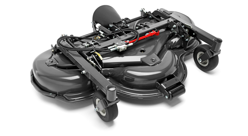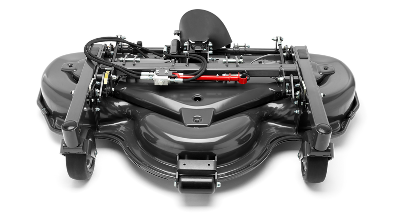 Högpresterande 155 cm kombiaggregat. En innovativ teknisk lösning från Husqvarna som ger ett kombinationsaggregat med mulching och bakutkast i ett och samma aggregat. Kraftig aggregatkonstruktion pressat i ett stålplåtstycke. Hydralisk klipphöjdsjustering.