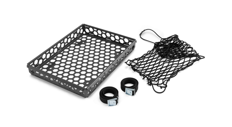 Praktisk lasthållare för extrautrustning. Enkel åtkomst till 12V uttag för laddning av bärbara batteriprodukter. Skenor och fästkrokar monteras som standard på motorhuven och kan kompletteras med en praktisk bagagehållarsats.