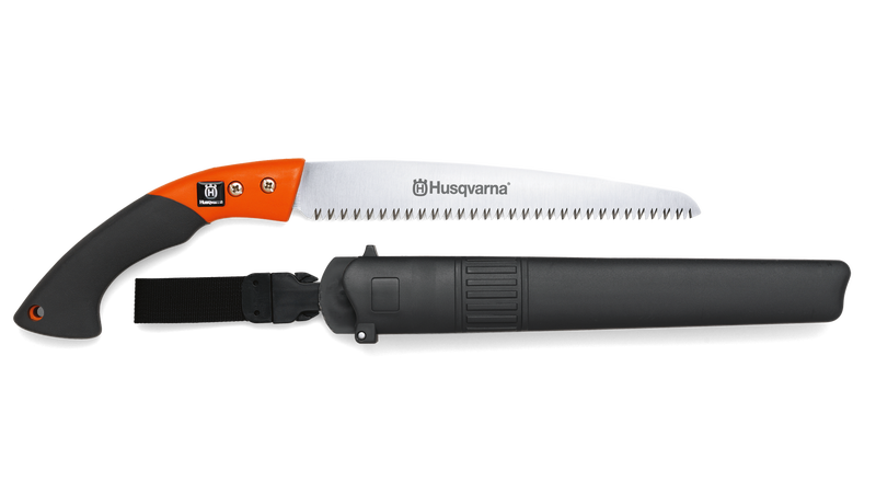 Lätt grensåg av högkvalitativt stål och försedd med greppvänligt handtag. Praktiskt hölster att fästa i bältet med ett clips för att enkelt lossa grensågen när den används. Grensågen sågar vid dragande skär. För beskärning av trä, plaströr, väggskivor och beskärning av grenar. Bladet är tillverkat av värmebehandlat kolstål, förkromat och rostbeständigt. Grensågen behöver ej slipas vid normal användning.