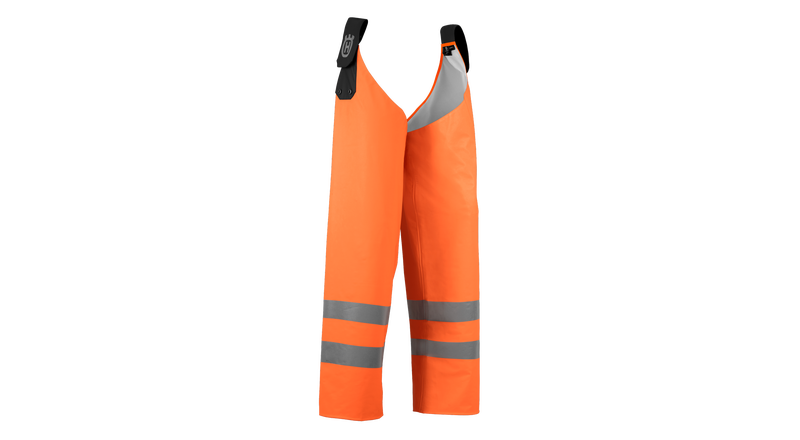 Regnbyxholkar tillverkade av polyestertrikå med en hållbar ensidig PU-beläggning med svetsade sömmar – ett starkt men ändå lätt och ljudlöst material. Designade för att fästas på ett bälte eller verktygsbälte. Godkända enligt EN ISO 20471 klass 1 och EN 343. En storlek.