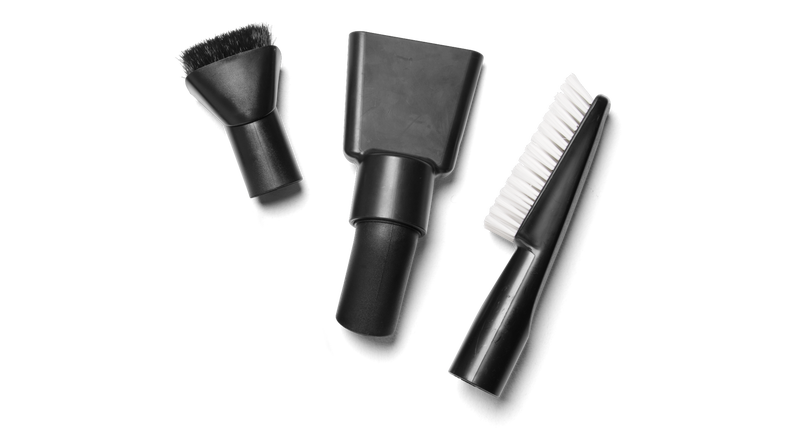 En uppsättning av tre tillbehör som är idealiska för rengöring av fordon. Innehåller en rund borste, en dammborste och ett gummimunstycke