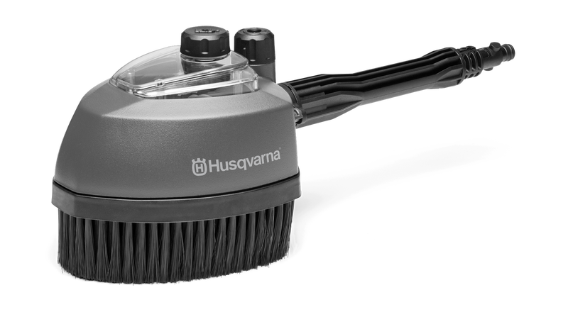 Den roterande borstsatsen har tre olika borstar som kan monteras för mjuka, hårda och svåråtkomliga ytor. Den har en inbyggd tank för rengöringsmedel som ger den perfekta doseringen.