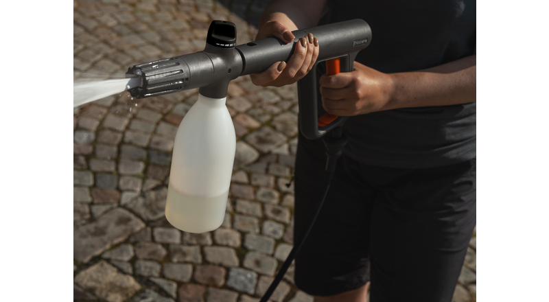 Skumspruta FS 400 är en effektiv skumspruta med utmärkt skumförmåga för optimal dosering beroende på uppgift. Designen möjliggör enkel justering av mängden rengöringsmedel och appliceringsmönster. FS 400 kan fästas direkt på sprutpistolen för snabb och lätt hantering av tillbehöret.
