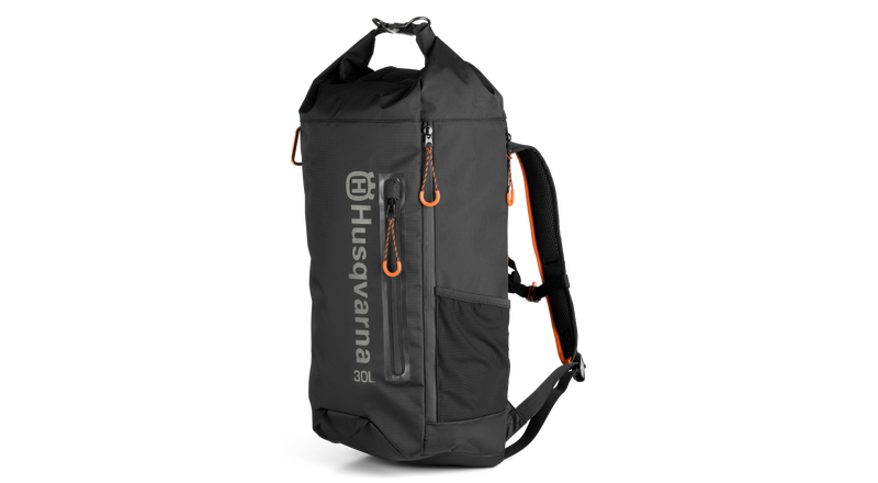 En bekväm, högkvalitativ ryggsäck för alla väderlekar. Det hållbara TPU/Ripstop-materialet håller insidan torr och gör ryggsäcken enkel att rengöra. Det finns flera fack och lösningar för att kunna packa en bärbar dator, en vattenflaska eller en termos. Ryggsäckens förslutning kan enkelt stängas på två olika sätt för att hålla vatten ute.